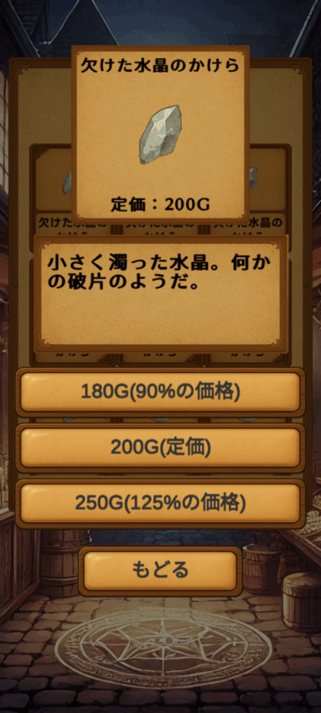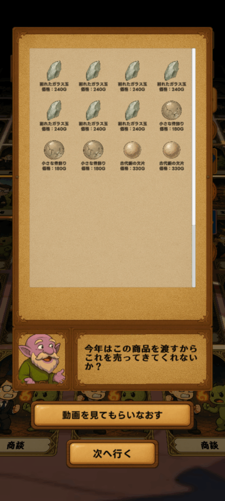 このゲームは手元の商品を売ってお金を稼ぐ必要があります。