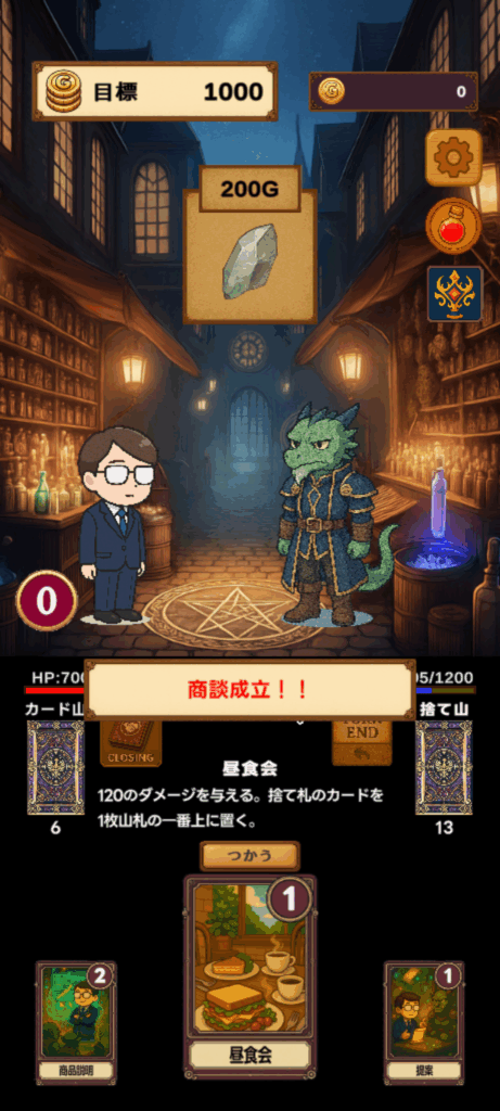 異世界営業マンは、営業カードデッキを組んで、商談相手を口説く、デッキ構築バトル型営業ゲームです。