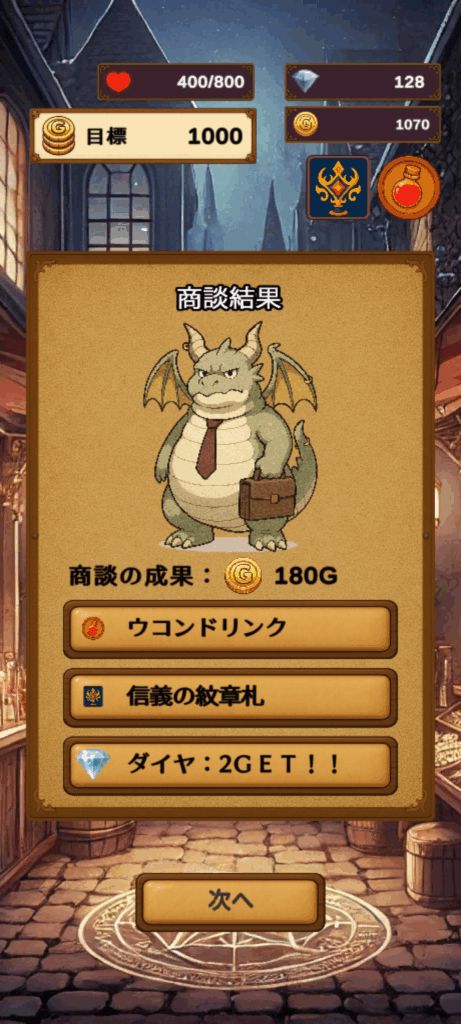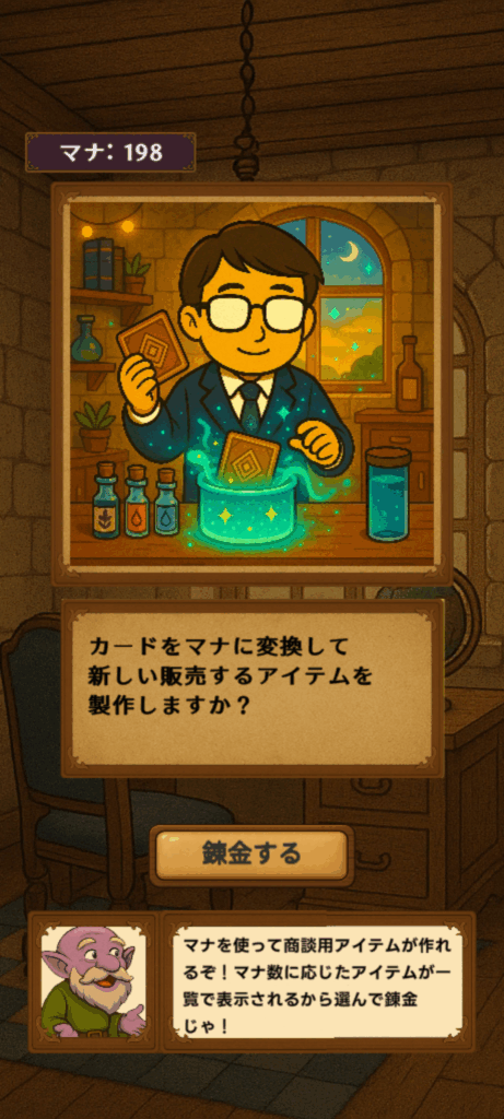 ゲームに慣れてきたら、商品を錬成してみましょう。