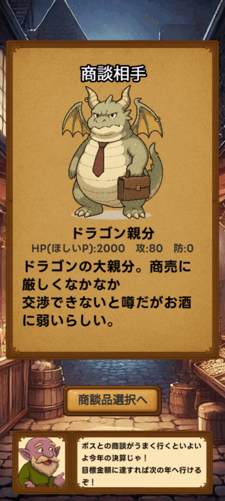 毎年12ヶ月目にはボスが出てきますので、それまでに体力を整え、営業デッキを強化しておきましょう。